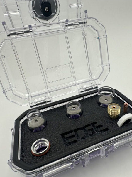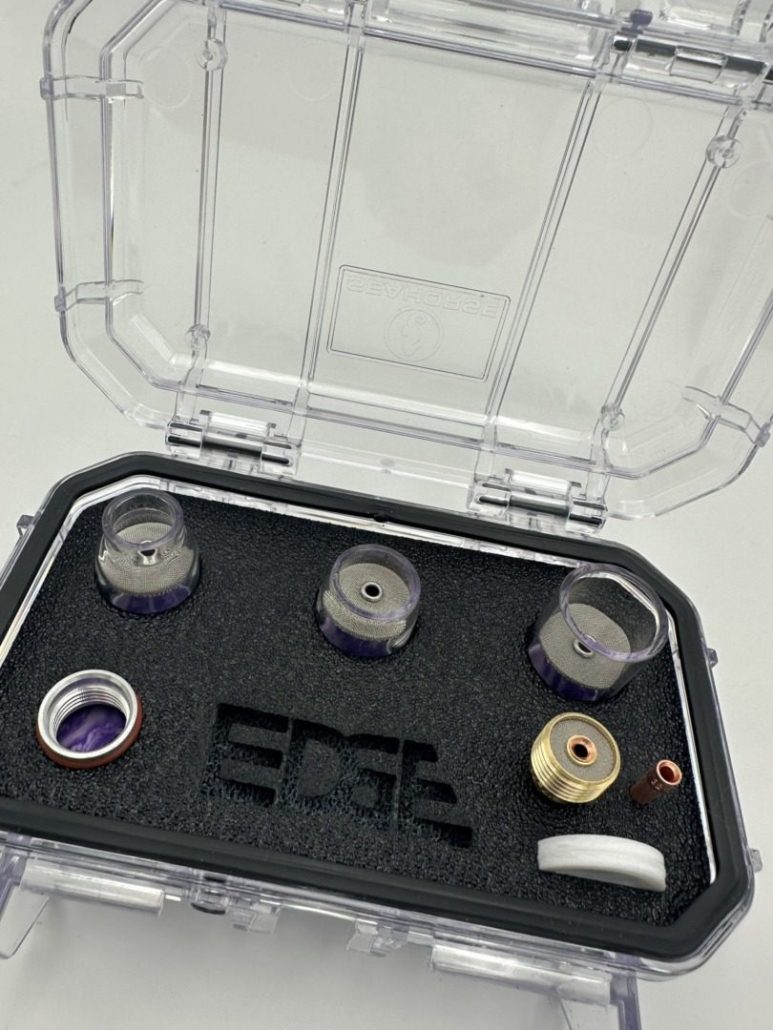 - 3 EDGE Glass Cups: #8LF, #10LF Shorty, and #12LF Shorty with EDGE Diffusers for superior gas coverage