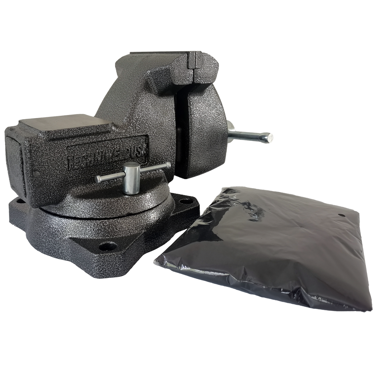 Grip Star Hercules GSV1176 6" Steel Bench Vise with Heavy Duty Rain Cover - Engineered for demanding clamping applications and long-lasting performance in the toughest work environments. Built with ductile iron construction and featuring a unique anti-rust oil coating, this professional-grade bench vise delivers 6700 lbs of clamping force for secure, stable workholding.